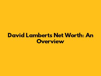 David Lambert's Net Worth: An Overview